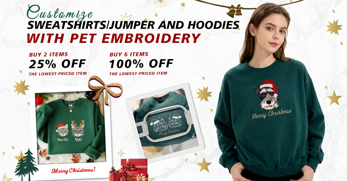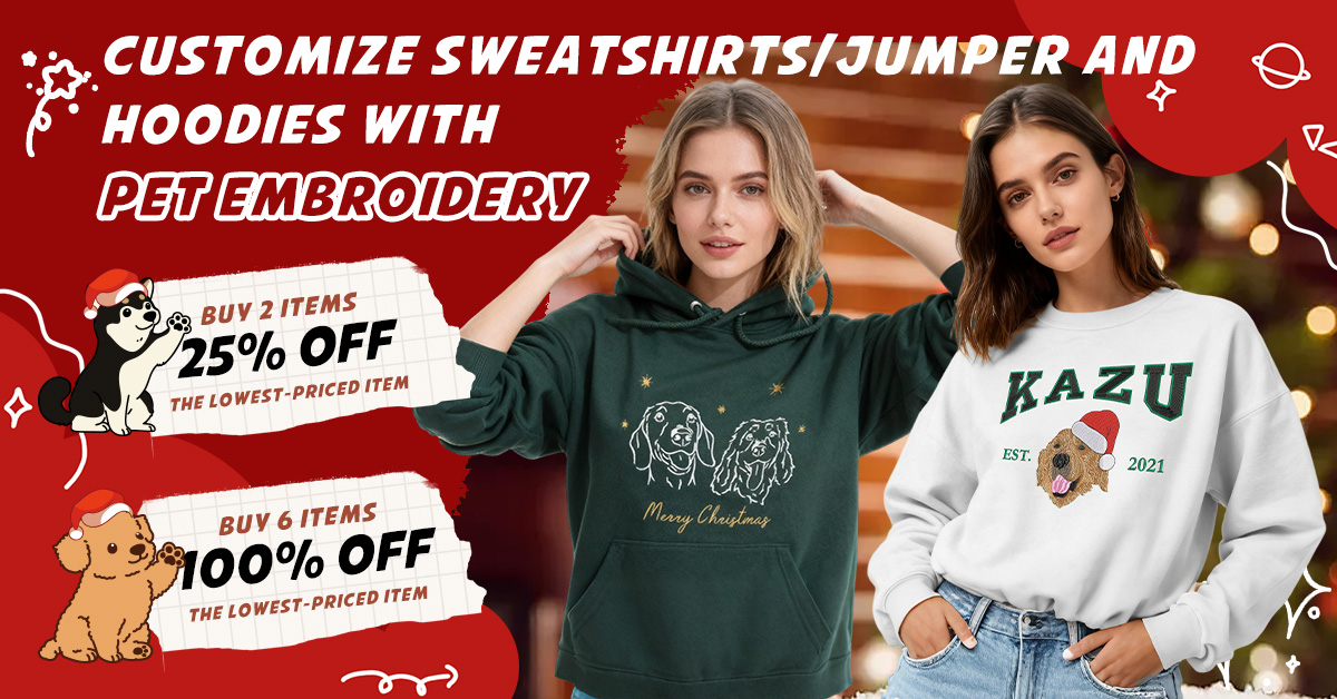 Custom Embroidered Pet Portrait Christmas Jumper Sweatshirt Hoodie T-shirt Xmas Gift For Kid