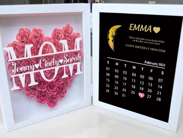 (Mum&Grandmum With Name) With REAL MOON PHASE Anniversary Calendar Custom flower frame
