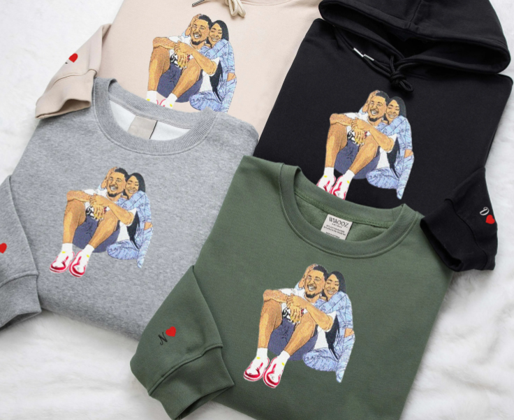 (with facial details) Custom Couple Full Color Embroidered Sweatshirt - 💕 Best Gifts to Lover 💕