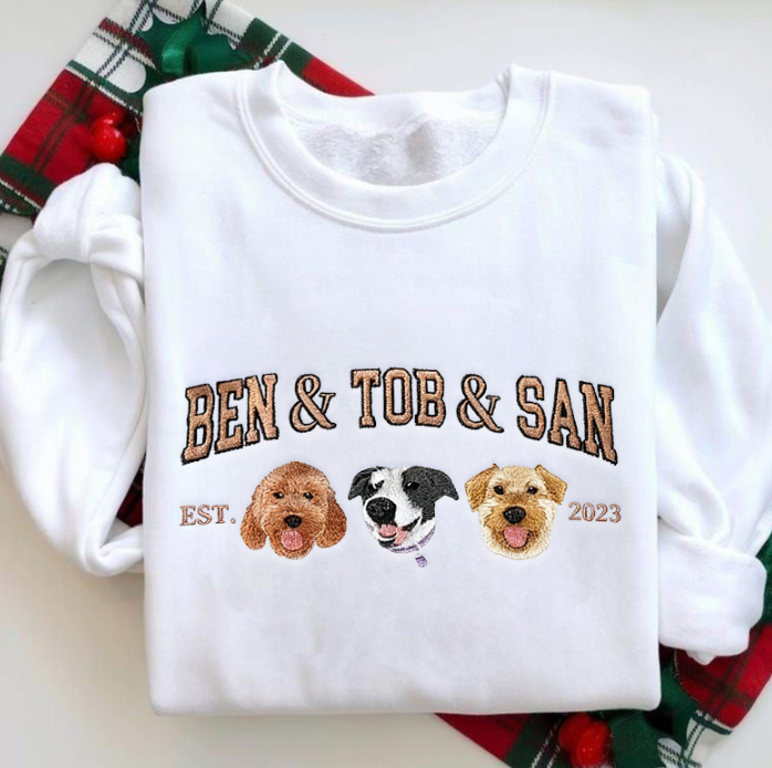 Custom 3 Pets Photo Christmas Classic Embroidered Sweatshirt/Hoodie
