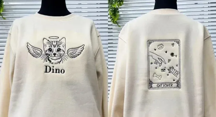 Custom Angel Cat Photo Outline Embroidered Sweatshirt, Hoodie, T-Shirt