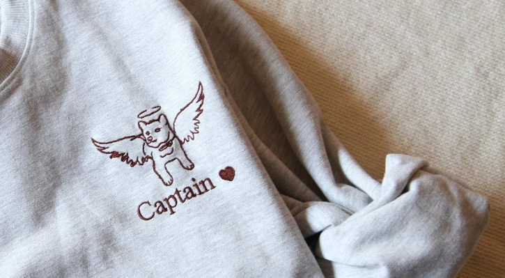 Custom Angel Pet Photo Full Body Outline Embroidery Sweatshirt, Hoodie, T-Shirt