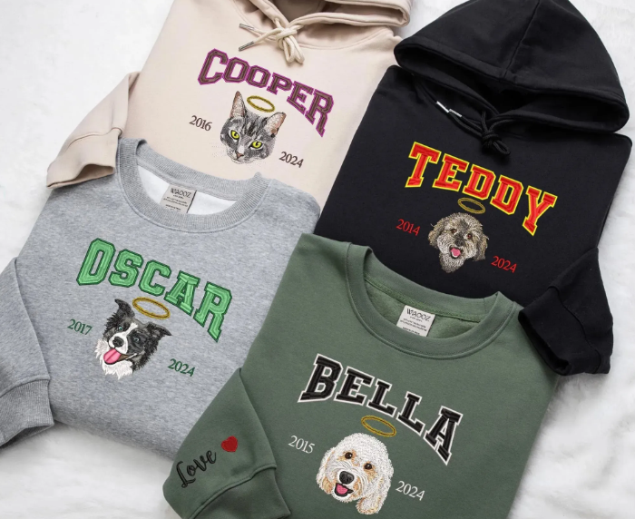 Custom Angel Pet Photo Halo College Style Embroidered Sweatshirt, Hoodie, T-Shirt