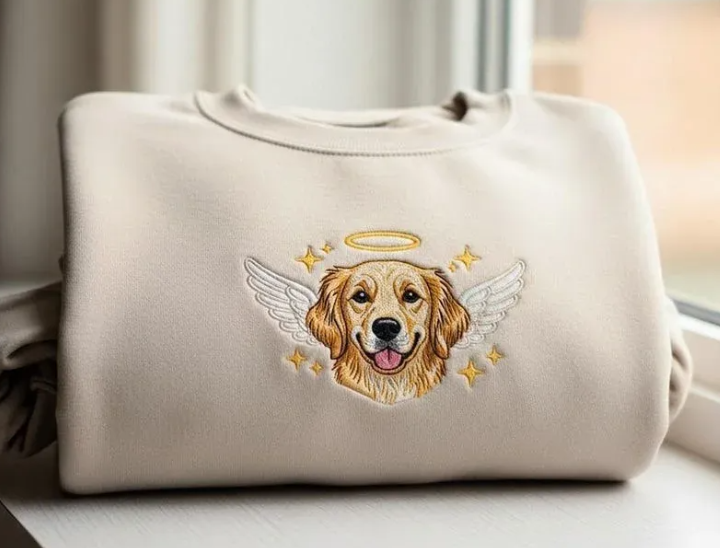 Custom Angel Pet Photo Star Full Color Embroidery Sweatshirt, Hoodie, T-Shirt