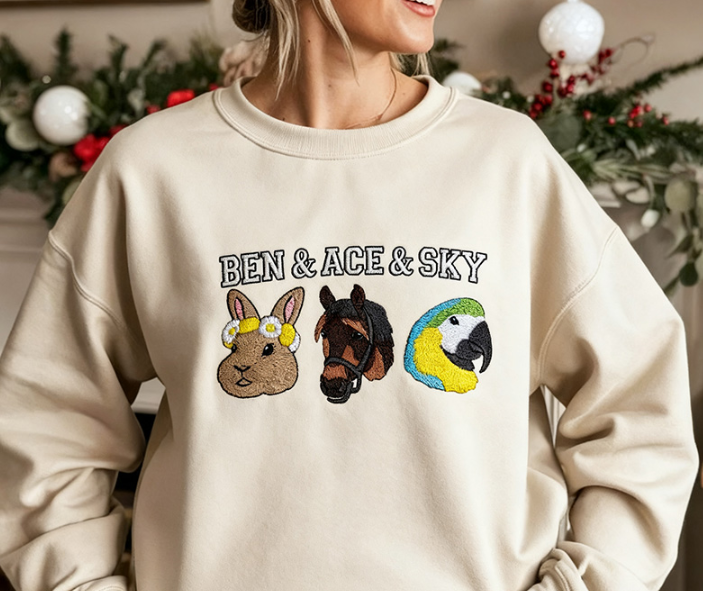 Custom Bird/Guinea Pig/Horse/Hamster/Rabbit Other Pet Photo Christmas Classic Embroidered Sweatshirt/Hoodie