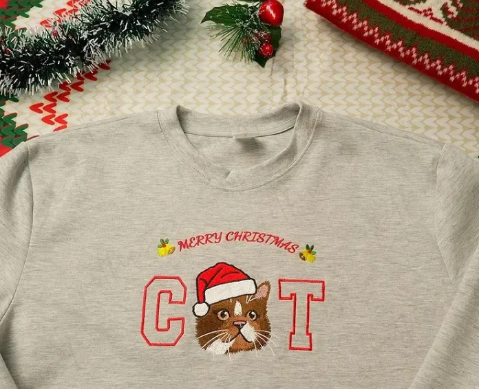 Custom Christmas Pet Face Embroidered Sweatshirt Hoodie For Dog Mom and Dog Dad