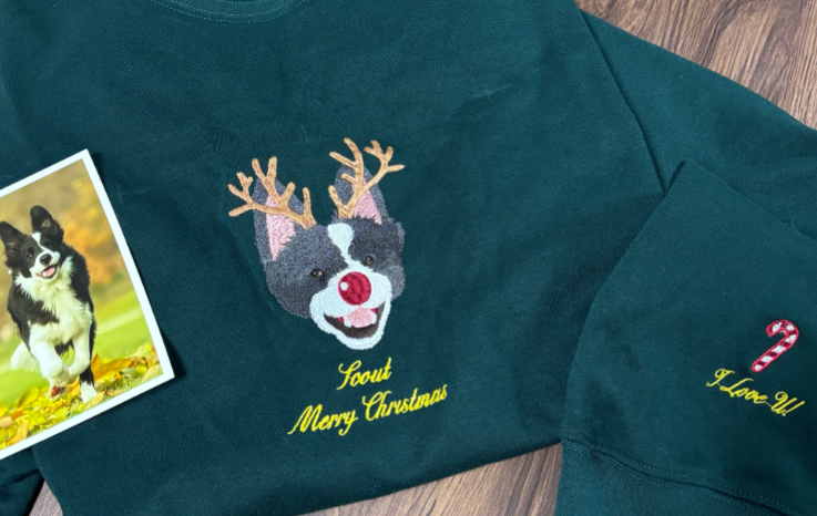 Custom Embroidered Pet Portrait Christmas Sweatshirt Hoodie Tee