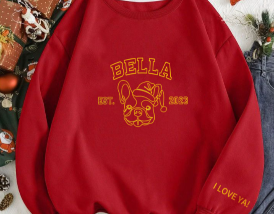 Custom Embroidered Pet Silhouette Christmas Sweatshirts, Perfect Christmas Gift For Pet Lovers