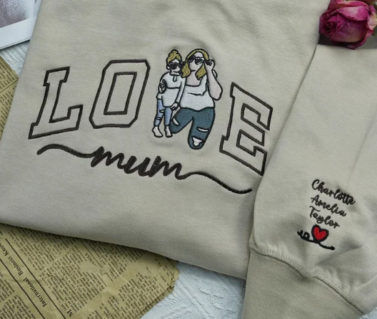 Custom Mum Mama Embroidered Photo Portrait For MOM Love Sweatshirt