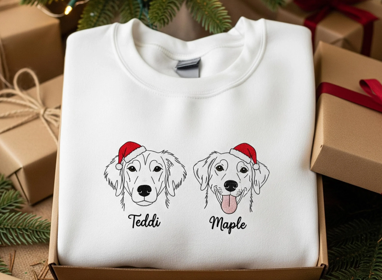 Custom Hand-drawn Pet Outline Print Sweatshirt, Hoodie, T-Shirt