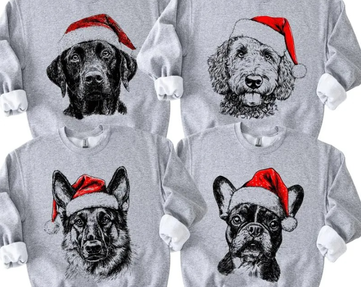 Custom Pet Christmas Sweatshirt - Personalized Dog/Cat Santa Hat Graphic Hoodie