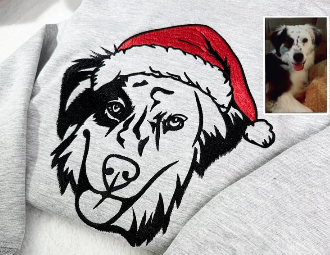 Custom Pet Face Embroidered Hoodie or Sweatshirt with Colorful Santa Hat , Christmas & Memorial Gift