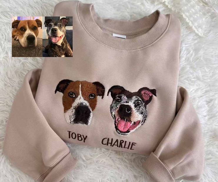 • Personalized Pet Portrait Embroidery – Upload a clear photo of your pet, and we’ll create a finely detailed embroidered design.