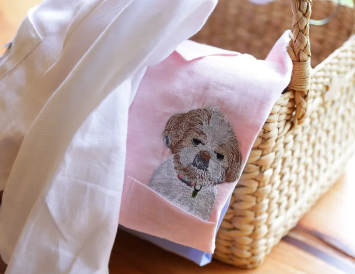 Custom Pet Photo Full Color Embroidered Unisex Pocket Shirt - Formal and Casual