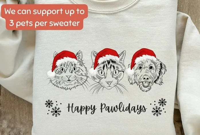 Custom Pet Photo Hand-drawn Outline Christmas Sweatshirt, Hoodie, T-Shirt