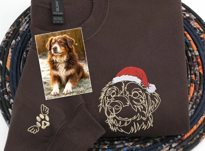 Custom Pet Photo Outline Embroidery Christmas Sweatshirt, Hoodie, T-Shirt