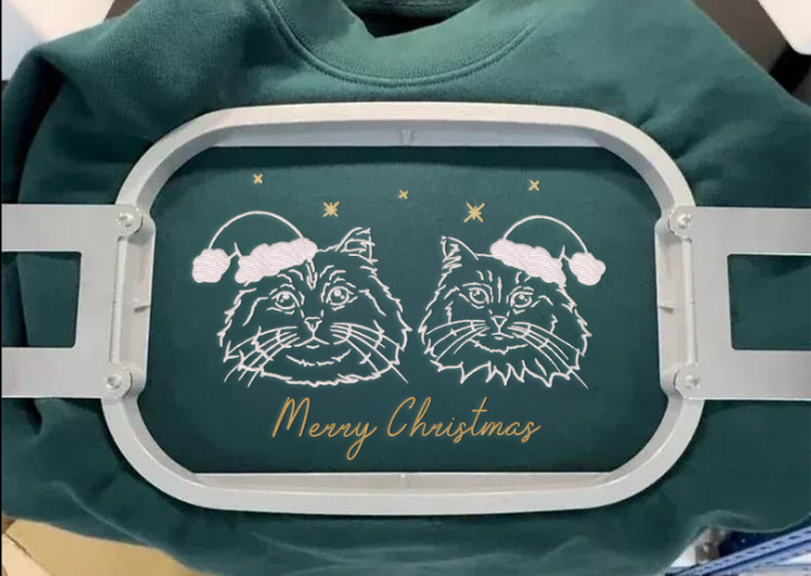 Custom Pet Photos Outline Embroidery Christmas Special Sweatshirts, Hoodies, T-Shirts