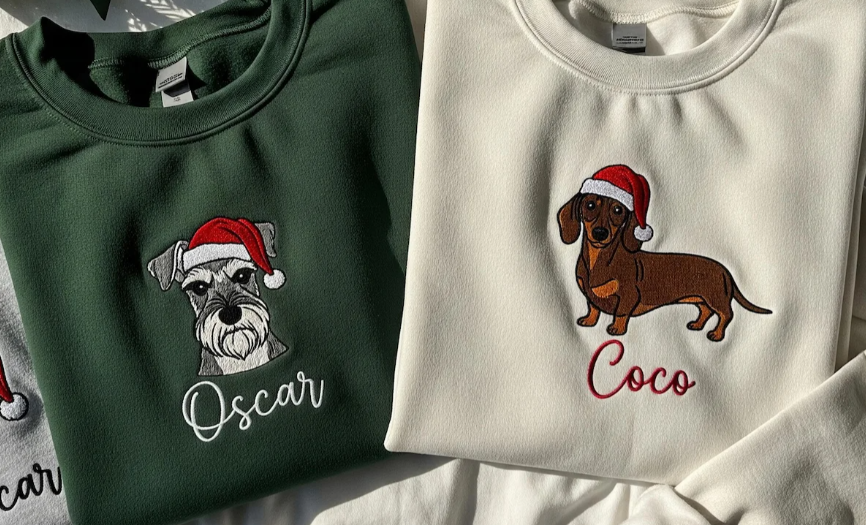 Custom Pet Portrait Christmas Hat Embroidered Sweatshirt, Hoodie, T-Shirt