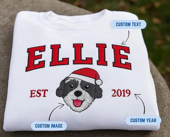 Custom Pet Portrait Christmas Hats Preppy-Style Embroidered Sweatshirt, Hoodie, T-Shirt