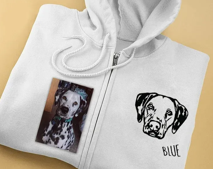 Custom Pet Portrait Embroidered Portrait Hooded Zip Up Hoodie