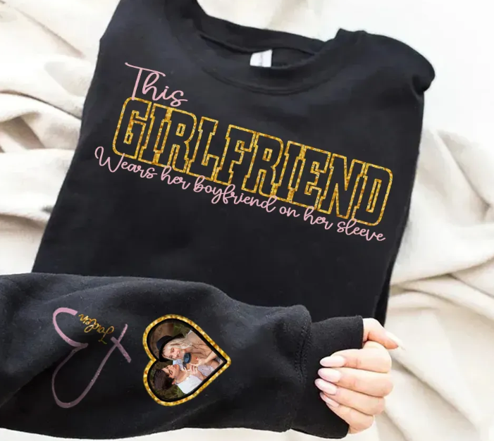 Custom Wear Your Heart On Your Sleeve Girlfriend Sweatshirt - Can Be Printed With Names And Couple Photos