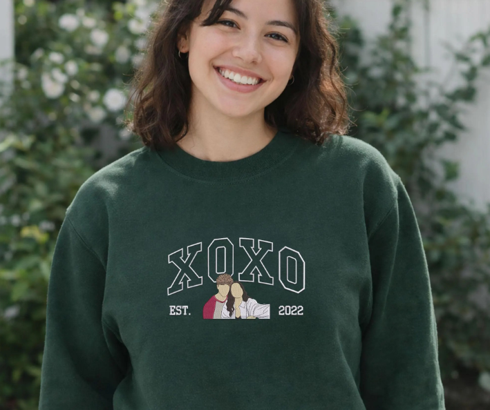 Custom XOXO Couple Embroidered Sweatshirt From Photo