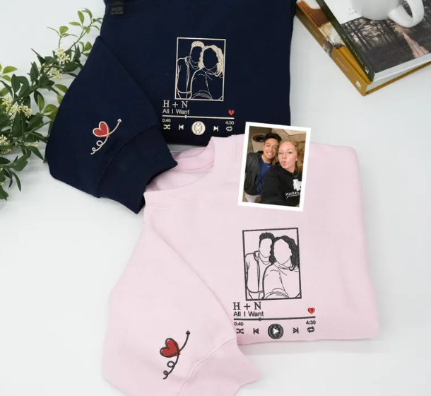 Customized Couple Photos Embroidered Sweats , Personalized Love Song Hoodies