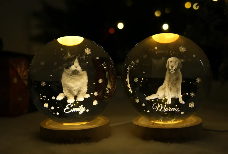 Customized full-body pet photo Christmas crystal ball night light