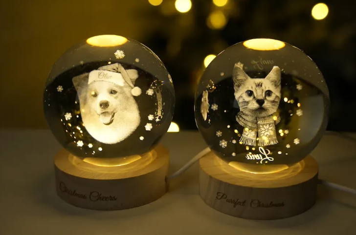 Customized pet face photo Christmas crystal ball night light