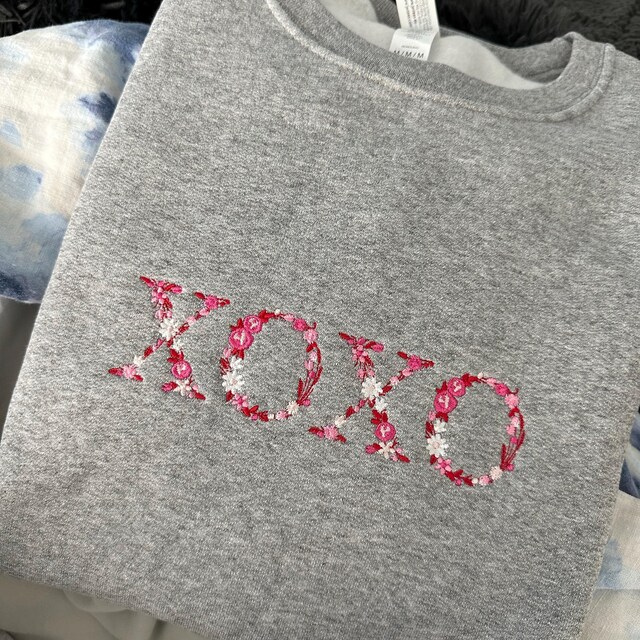 Embroidered XOXO Floral Sweats Valentines Flower Letter Hoodies