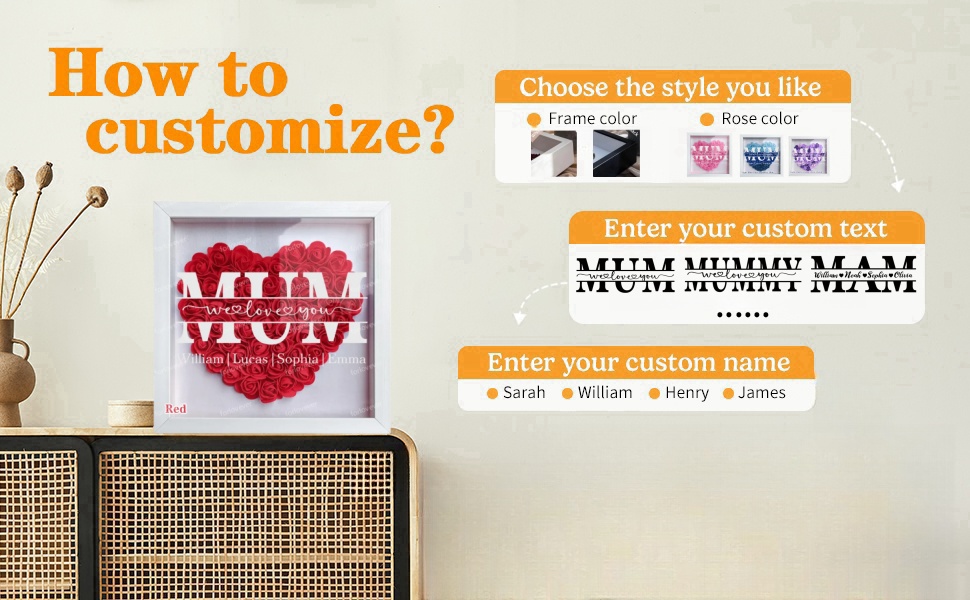 Mom/Grandma We Love You - Personalized Heart Shaped Flower Shadow Box