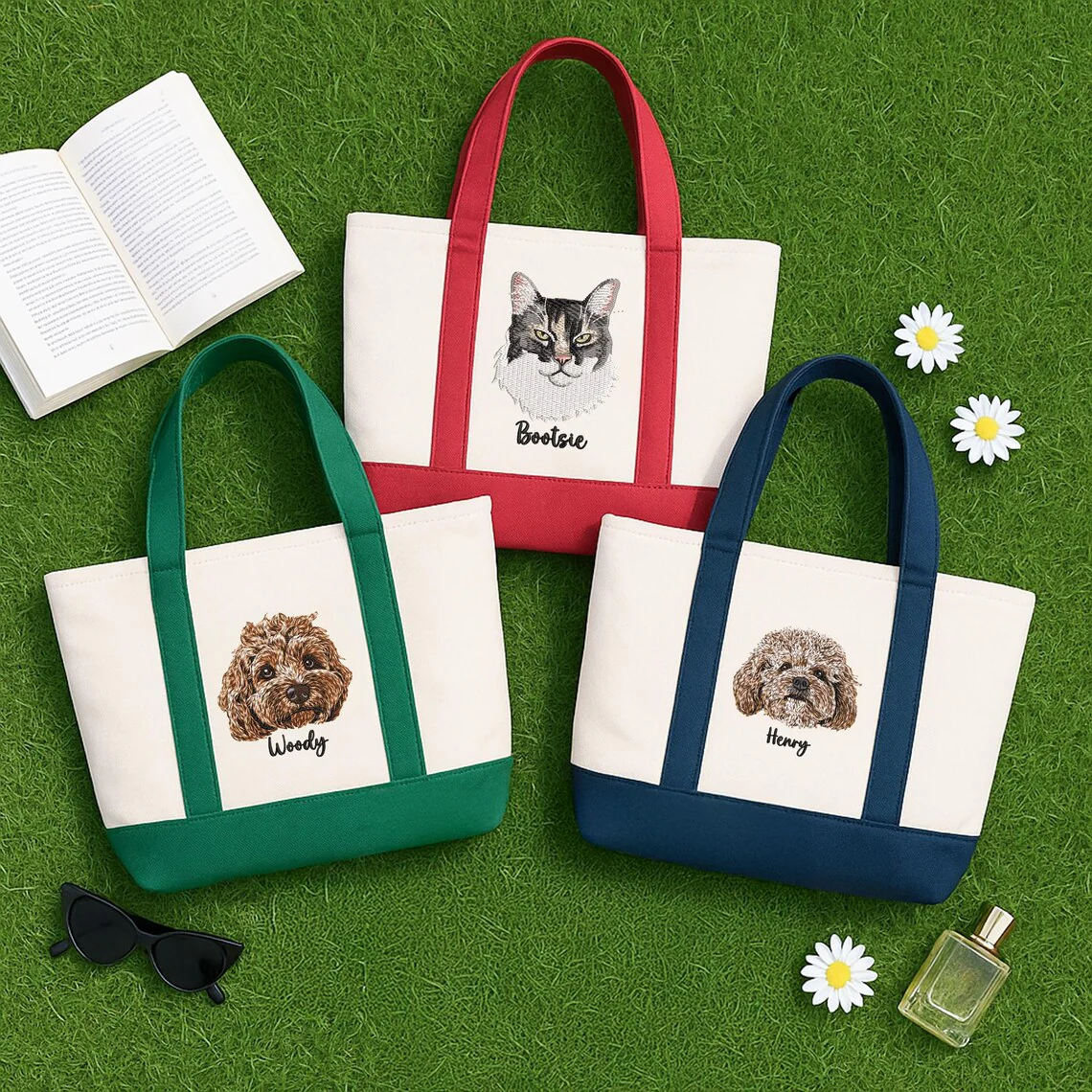 Personalized Dog Tote Bag with Custom Embroidered Photo - Unique Dog Mom Gift Idea