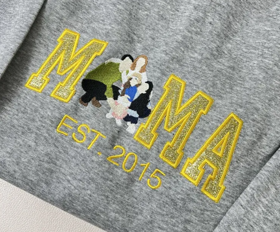 Personalized MAMA Embroidered Family Photo Glitter T-shirt Sweatshirt