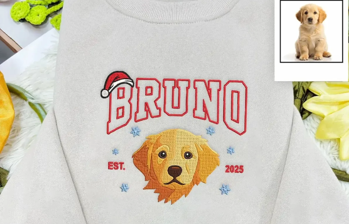 Personalized Pet Photo Christmas Embroidered Sweatshirts, Hoodies, T-Shirts