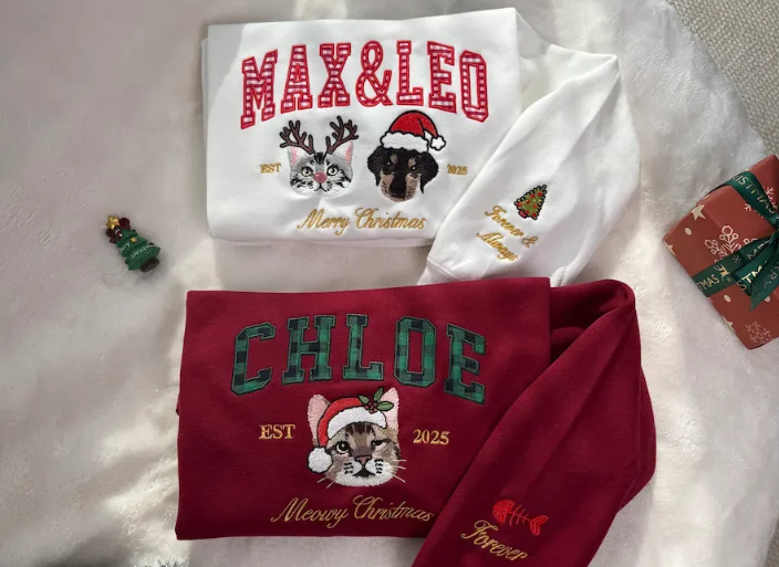 Personalized pet photo embroidered fashion patch sweatshirt with side bow