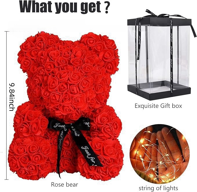 Rose Teddy Bear With Pearl (Handmade Rose, Preserved Forever)